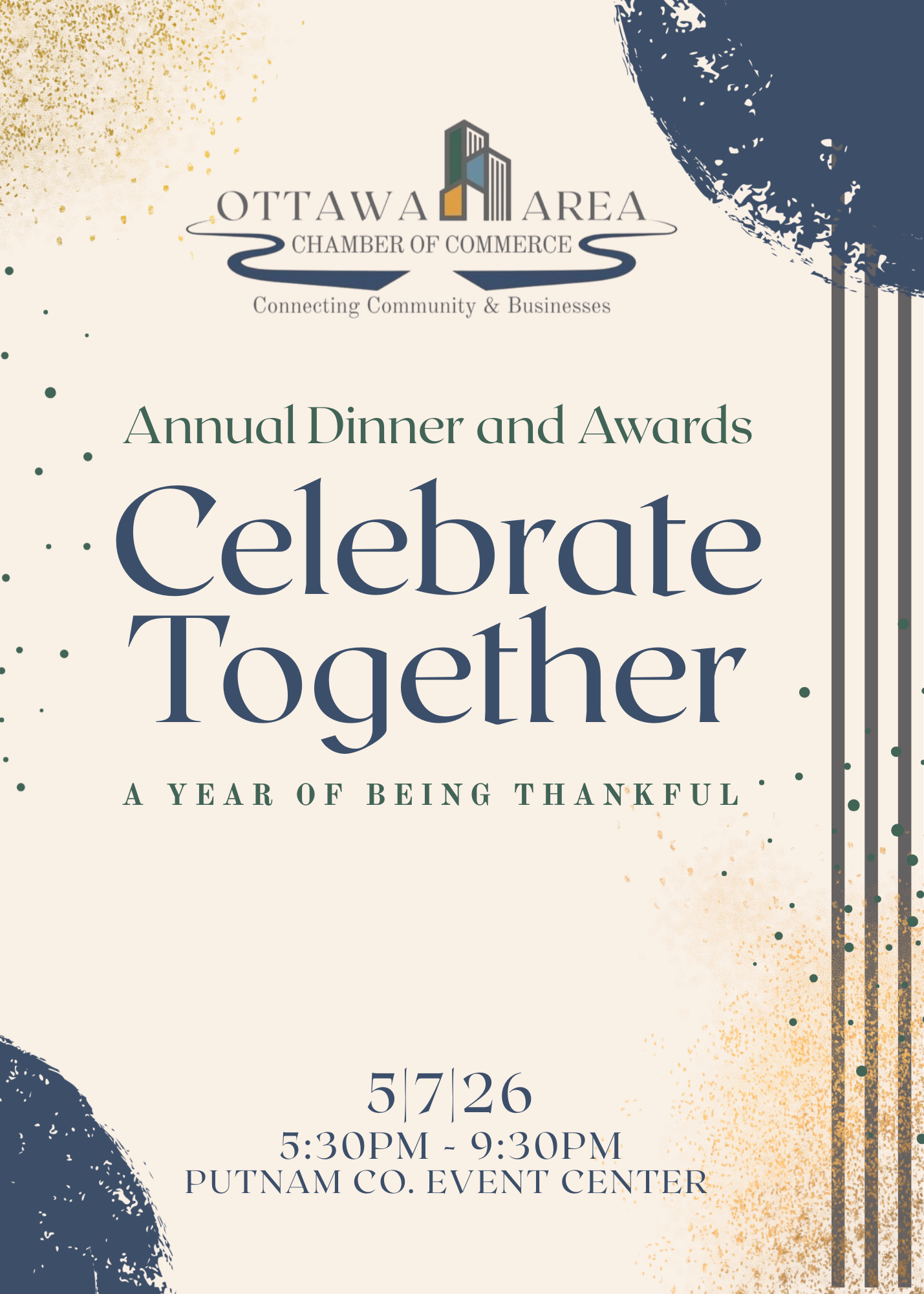 Celebrate the businesses and leaders who make our community thrive. By sponsoring the Ottawa Area Chamber Awards Dinner, you’ll gain valuable visibility while supporting an evening dedicated to recognizing excellence, building connections, and strengthening our local business community. Join us in making this signature event possible.